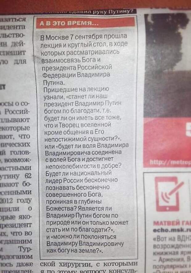 И - voilà - в сознании обывателя понятия "Бог" и "Путин" совместились.